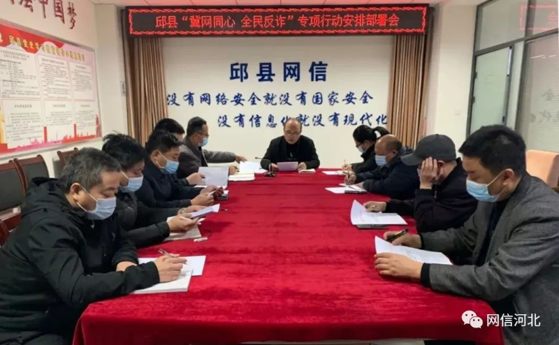 3月23日,邱县县委网信召开“冀网同心 全民反诈”专项行动安排部署会。县公安局、县法院、县检察院等9个单位相关负责同志参会。