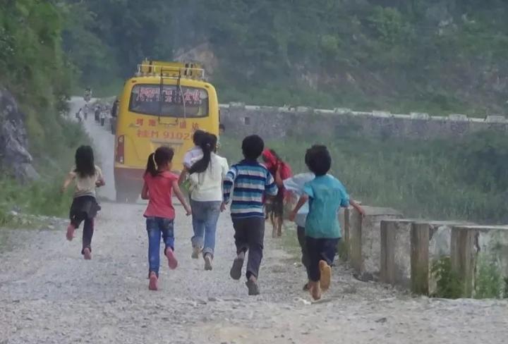 孩子们追着侯长亮乘坐的大巴车边跑边哭。资料图片