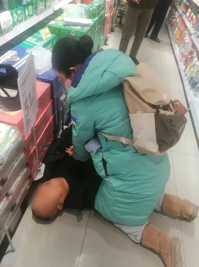 常晓清现场对老人进行心肺复苏急救(照片提供:现场群众)