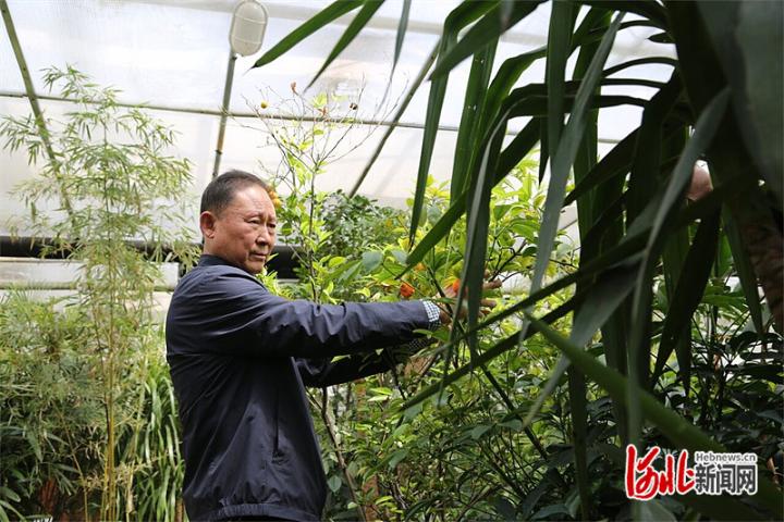4月7日,滦平县周台子村党委书记范振喜在村里的温室大棚看瓜果蔬菜长势。受访者供图