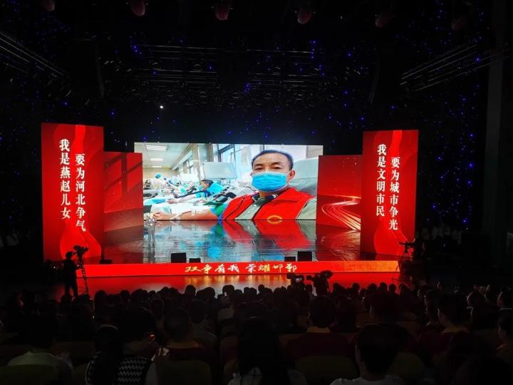4月24日,馆陶县小桔灯无偿献血志愿服务队创始人杲光兴在“双争有我荣耀邯郸”双争故事讲述活动中,分享了志愿服务队用微光照亮城市的温情故事。记者陈正摄