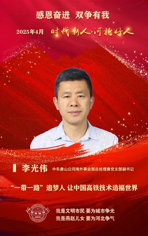 李光伟,男,1983年6月出生,中共党员,中车唐山公司海外事业部总经理兼党支部副书记。李光伟长期奋斗在中车国际化业务一线,为中国高端装备“走出去”发光发热。作为“一带一路”建设者,李光伟的足迹遍布阿根廷、古巴、安哥拉等国,其负责的多个项目为当地民众带来切实便利。尽管长期与家人聚少离多,他仍以“让世界看见中国高铁技术”为使命,用每年数十万航空里程和无数个凌晨邮件,诠释新时代“中国高铁工人”的担当,证明平凡岗位也能铸就伟大成就。(唐山市推荐)