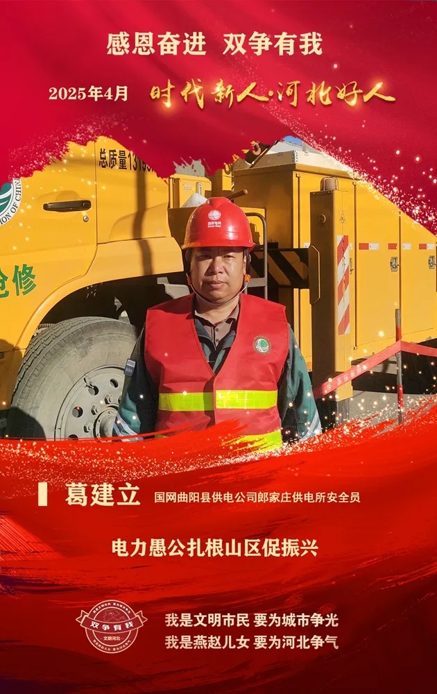 葛建立,男,1974年1月出生,中共党员,国网曲阳县供电公司郎家庄供电所安全员。葛建立扎根山区三十载。他是深山里的“光明哨兵”,用光阴丈量着辖区内每一寸输电线路,用布满老茧的手掌记录着每一条配电线路的“生命体征”;他是乡村振兴路上的“电力愚公”,驻村帮扶期间带领村民钻打深水井二眼,铺设管道2000多米,解决了村民的安全饮水问题;他是北部三乡的“活地图”,足迹踏遍了辖区内的沟沟坎坎。曾获得“国网河北省电力有限公司先进工作者”“保定好人”等荣誉称号。(保定市推荐)