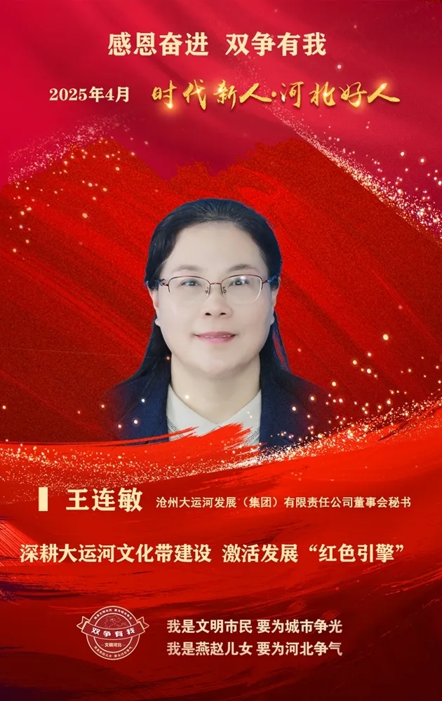 王连敏,女,1974年9月出生,沧州大运河发展(集团)有限责任公司董事会秘书。王连敏在沧州市园博园、南川老街等重大项目建设中,创新推出“大运河畔党旗红”党建品牌,带领党员干部深入一线攻克难题。面对上千户居民的征地拆迁复杂情况,日夜工作,化解群众疑虑,保障项目顺利开工,经验材料在《河北日报》刊发。她牵头建立大运河非遗文化馆“爱心驿站”,将其打造为公益服务阵地,为困境儿童发放学习用品,供参观学习、进行非遗体验的机会,相关举措被人民网、新华网专题报道。曾荣获“全国优秀工会工作者”“河北省三八红旗手”等荣誉称号。(沧州市推荐)