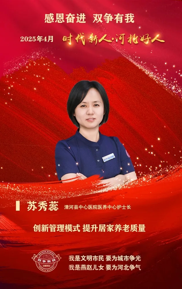 苏秀蕊,女,1984年6月出生,中共党员,清河县中心医院医养中心护士长。苏秀蕊扎根护理岗位17年,以专业与爱心诠释敬业奉献,为老人健康保驾护航。2018年勇挑重担,建成城西养护院,开设老年监护室,开展上门护理、居家托养,如今养护院入住老人达180余人。她每年开展护理员专业培训12次,累计培训人数约800余人,带动护理员培训就业。曾获评全国县市医院擂台赛最佳示范案例奖、河北省护理员技能大赛二等奖、多次获得邢台市护理技能竞赛一等奖。(邢台市推荐)