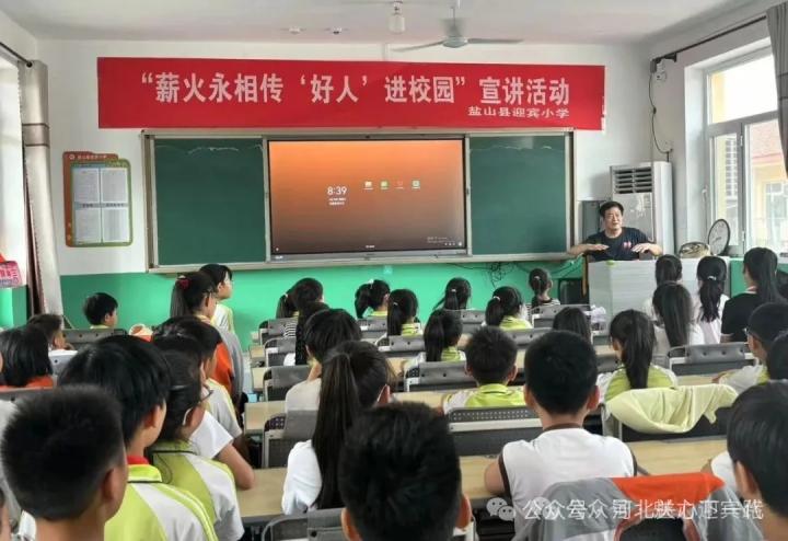 6 月 20 日,盐山县关工委 “薪火永相传 好人进校园” 活动在迎宾小学启动。“中国好人”、盐山县航空博物馆馆长张长生以《做好人贵在坚守》为题,向 120 余名师生讲述自己数十年坚持做好事的历程。从公益奉献到文化传承,他用质朴语言诠释 “坚守” 的意义,让学生近距离感受道德模范践行社会主义核心价值观的感人故事。后续县关工委将邀请更多 “中国好人”“道德模范” 走进校园,以主题讲座、分享会等形式传递榜样力量。