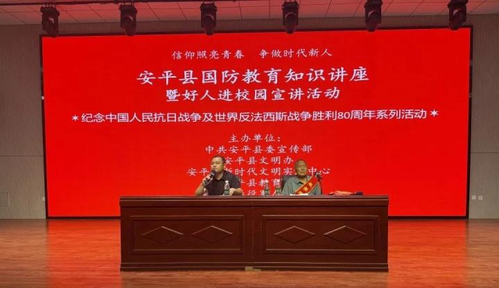近日,安平县第三实验小学举办 “信仰照亮青春” 国防教育讲座暨好人进校园活动。“身边好人” 闫金虎以详实史料讲述国防历史,从英雄故事到新时代使命,阐释 “国无防不立” 的深刻内涵,激发学生爱国热忱。他还分享成长中的奉献故事,用平凡事迹中的大爱与坚守,让学生感悟 “好人精神” 的温度,明白向善向美在于日常行动。同学们表示将以英雄为镜、以好人为师,将信仰与担当融入学习生活。