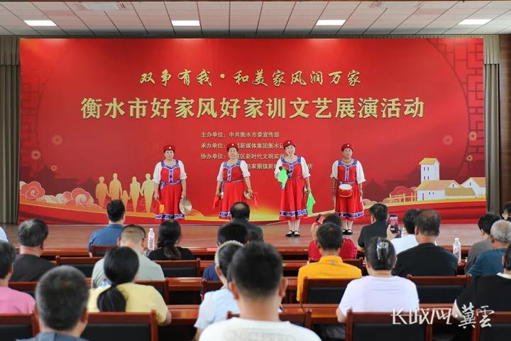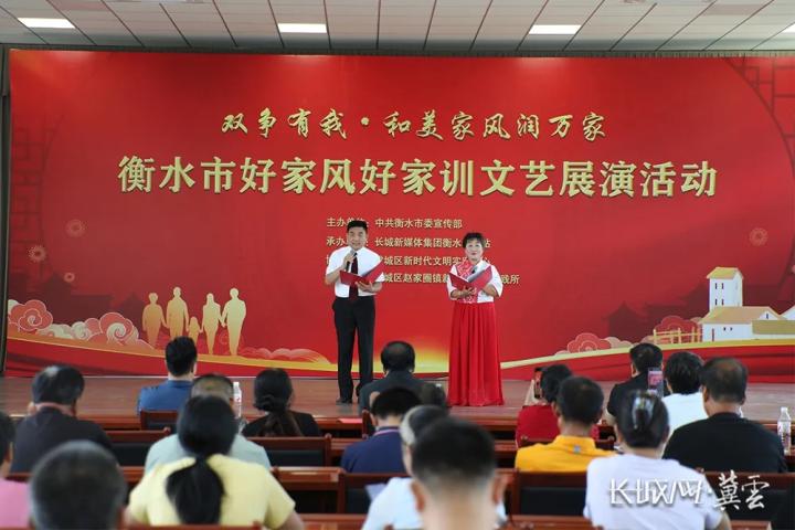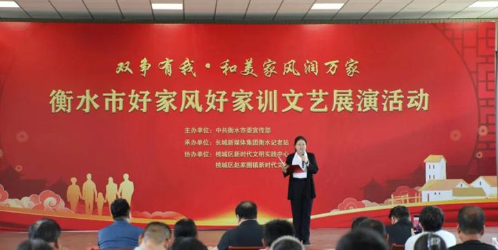 8月1日,由中共衡水市委宣传部主办,桃城区新时代文明实践中心、桃城区赵家圈镇新时代文明实践所协办的“双争有我·和美家风润万家”衡水市好家风好家训文艺展演活动在衡水市桃城区赵家圈镇新时代文明实践所举办。来自全市的优秀宣讲选手、文艺爱好者齐聚一堂,用文艺表演与主题宣讲相结合的形式,传递优良家风、弘扬文明新风。衡水市文明办、桃城区文明办及赵家圈镇职工代表、村民代表100余人参与了此次活动,共同感受家风文化的独特魅力。