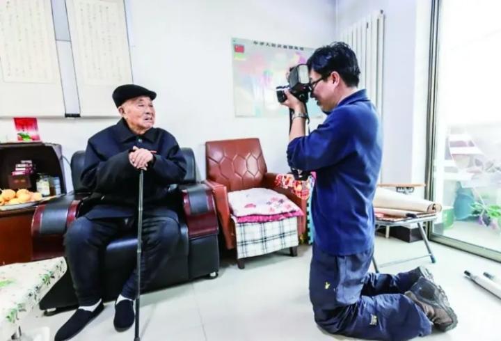 戚辉为八路军老战士宁东明拍照。资料片 唐山公益摄影团队提供