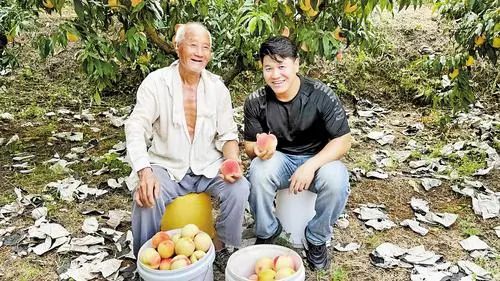 8月16日,刘文江拿着刘大爷家产的桃子,对着直播镜头如数家珍。不到24小时,就卖出了500多公斤。