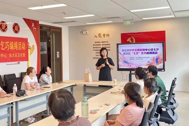 8月28日,廊坊安次区新时代文明实践中心开展了“我在新时代文明实践中心过七夕——安次区‘七夕’乞巧编绳活动”。手工老师先讲解七夕 “牵牛织女” 传说、“穿针乞巧” 等习俗,再细致演示编绳步骤。居民们动手尝试,交流心得,现场热闹,五彩绳凝聚对美好生活的祝福。活动普及民俗文化,让居民感受传统节日独特魅力。