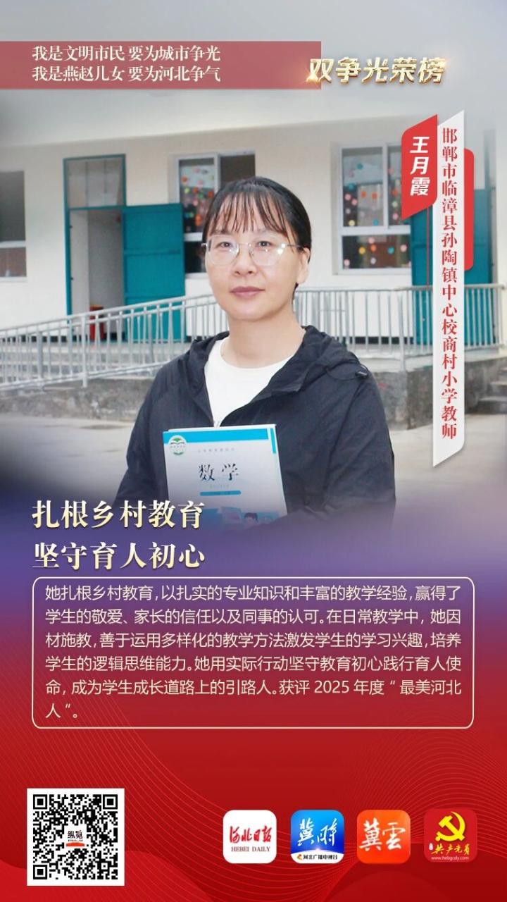她扎根乡村教育,以扎实的专业知识和丰富的教学经验,赢得了学生的敬爱、家长的信任以及同事的认可。在日常教学中,她因材施教,善于运用多样化的教学方法激发学生的学习兴趣,培养学生的逻辑思维能力。她用实际行动坚守教育初心践行育人使命,成为学生成长道路上的引路人。获评2025年度“最美河北人”。