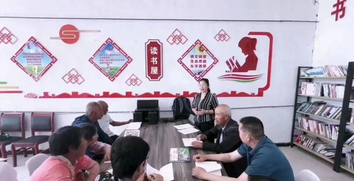 图为康保县屯垦镇开展农家书屋实践活动政策解读