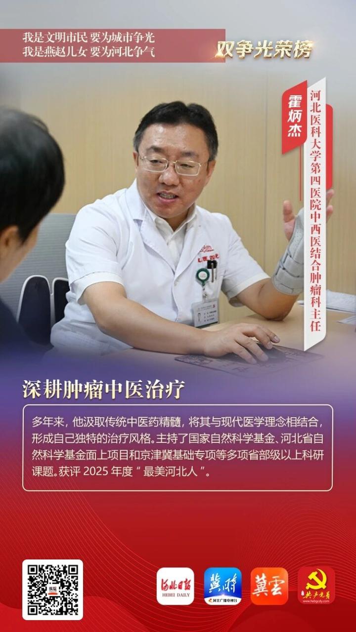 霍炳杰,中共党员,河北医科大学第四医院中西医结合肿瘤科负责人、主任医师、教授、博士生导师。