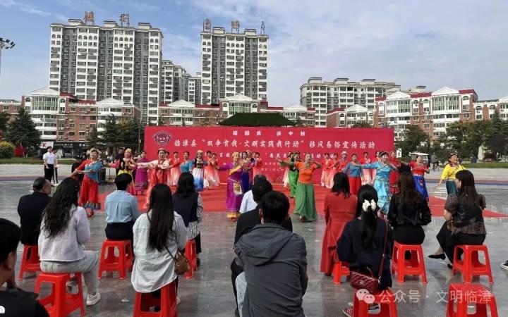 临漳县举办“双争有我·文明实践我行动”移风易俗主题宣传活动,通过音乐快板《天价彩礼要不得》、先进典型宣讲文明乡风、惠民服务等形式,传递婚事新办、勤俭节约理念,有效引导群众见贤思齐、摒弃陋习。