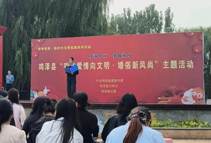 鸡泽县开展“我的爱情向文明·婚俗新风尚”主题活动,青年代表分享对文明婚恋的理解,宣读《文明婚恋倡议书》。现场设置文明实践服务台,提供政策咨询、健康义诊,营造了浓厚的文明实践服务氛围。