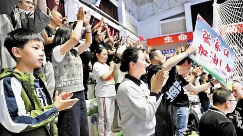 9月20日晚,“河北五超”常规赛第六轮赛事开赛,观众为比赛队员加油。
