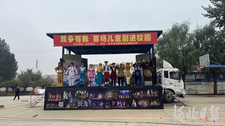 10月15日,由河北省文明办主办的2025年“双争有我——百场儿童剧进校园”活动走进秦皇岛市北戴河区,先后在海宁路小学、海北路小学举办专场演出。