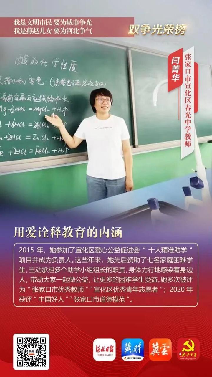 闫菁华,女,1985年8月出生,张家口市宣化区春光中学教师。
