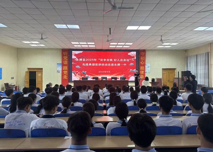 图为永清县“双争有我 好人在身边”先进典型宣讲走进学校。
