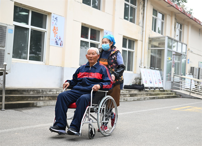10月24日,定州市民政事业服务中心的老人坐上了河北省福彩中心捐赠的轮椅。