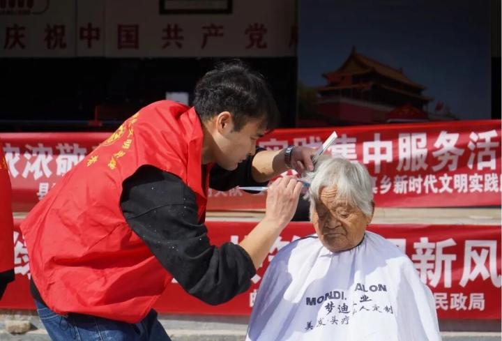 在庄窠乡贾庄村活动现场,曲阳县委宣传部工作人员向群众普及移风易俗、文明节俭、尊老爱老等理念,倡导科学健康的生活方式,引导大家争做文明新风的践行者和传播者;县消防大队开展消防安全集中宣传教育活动,发放宣传资料、讲解典型案例,向村民普及用电用气安全知识,增强群众安全意识;县摄影家协会的志愿者们为老人们免费拍摄“北京合影”,用镜头记录下他们的笑容与故事;乡卫生院医护人员为老人们免费测量血压、血糖,提供健康咨询和用药指导,针对常见老年疾病进行预防宣传,把健康和关怀送到老人心坎上;团县委组织的志愿者理发师们耐心细致地为老人们修剪头发,让他们感受到关怀与温暖。
