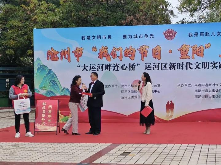10月23日,沧州市“我们的节日·重阳”主题文化活动暨“大运河畔连心桥”运河区新时代文明实践集中日活动,在西环小区广场举行。活动紧扣“我们的节日·重阳”关爱老年人公益主题,融合健康义诊、文艺演出与便民服务等内容,生动弘扬中华民族尊老、敬老、爱老、助老的传统美德,为老年朋友们送上节日的问候与温暖的陪伴,积极营造和谐友爱的社区氛围。