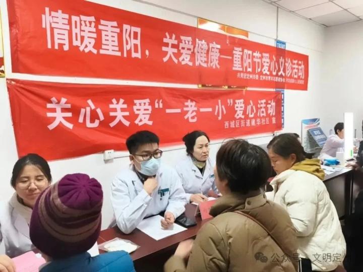 10月22日上午,共青团定州市委、定州市青年志愿者协会联合河北省第七人民医院在建华社区举办“情暖重阳 关爱健康”重阳节义诊活动。活动现场人气满满,青年志愿者与医护人员携手为建华社区、环亚九臻园小区、上东书院及周边居民送去专业医疗服务,用实际行动践行志愿精神,让这个重阳节充满健康与温暖。