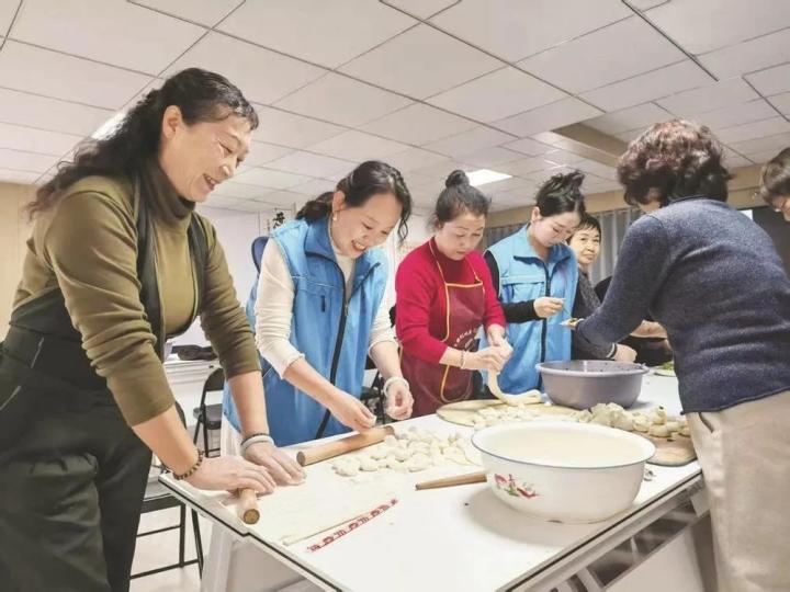 志愿者和群众在一起包饺子