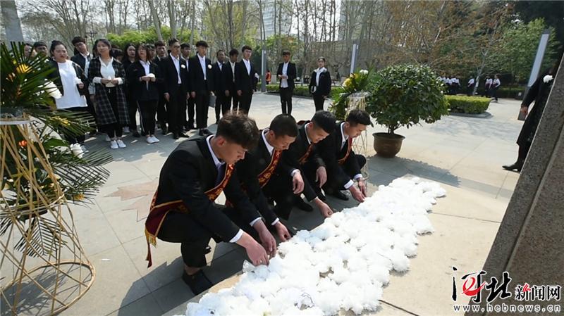 4月3日,河北外国语学院师生祭扫白求恩烈士墓。