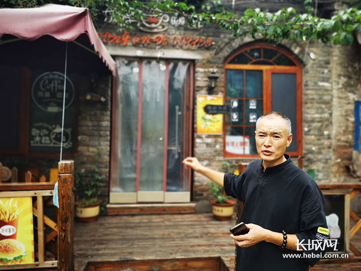 赵月合站在咖啡馆前向记者介绍。长城网记者 许艳艳 摄