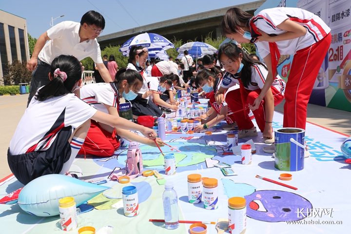 长城网讯(记者 烟成群)5月30日,“刷水漆,争做减碳小达人”六一主题科普活动在河北徐水晨阳千亩科技园举行,百余名小学生现场绘就巨幅水漆画卷,启动全民减碳行动。