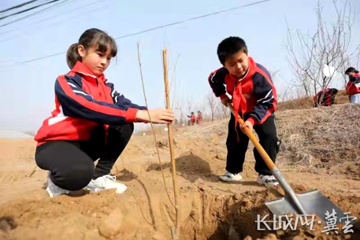 长城网·冀云客户端讯(记者 李佳琦 通讯员 王永周 刘一鸣 )植树节前夕,河北省邢台市临城县石城乡石城小学开展“我与小树共成长”主题活动,学生们栽下树苗,为大自然增添绿色。