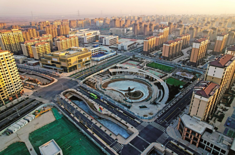2022年1月1日,新年的第一缕阳光照在河北雄安新区容东安置区。
