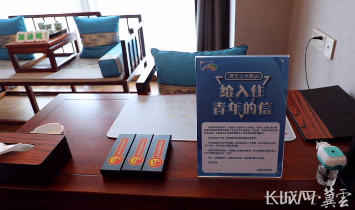 华坛国际酒店青年人才驿站房间内随处可见活泼温馨的青年元素。长城网·冀云客户端记者 万前进 摄