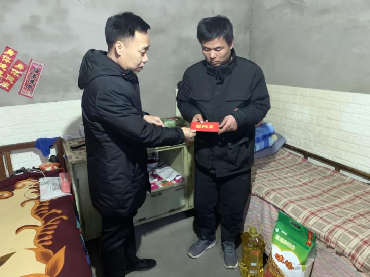 慰问荣获中国好人、全国道德模范提名奖的杨爱公(左2)。