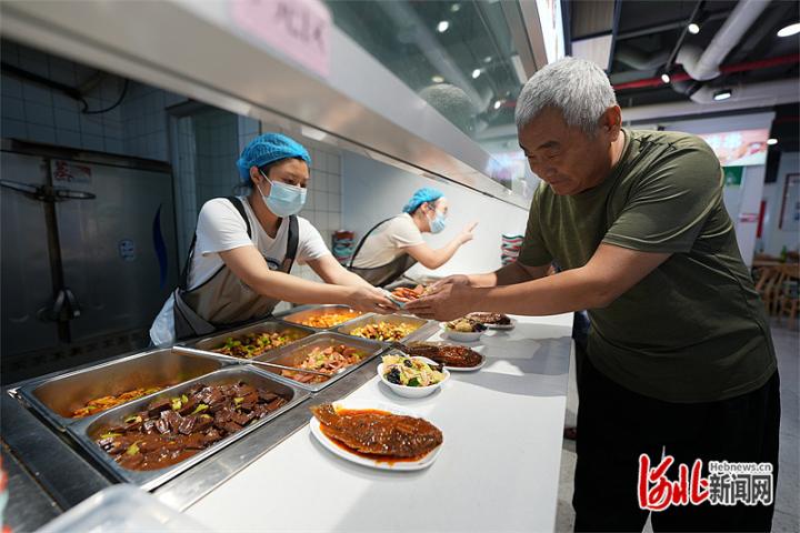 “刚开始营业时,我们的大师傅不会做本地口味的大锅菜,就虚心向社区老人们请教。”提起大锅菜,南文营社区食堂负责人张一智笑着介绍,食堂还曾把社区擅长做饭的老人请过来,教大师傅们制作雄安特色大锅菜。现在,这道菜已经成为南文营社区食堂的网红菜。为了让尽量多的顾客品尝到雄安特色大锅菜的美味,现在每人每顿限量只能打一份。
