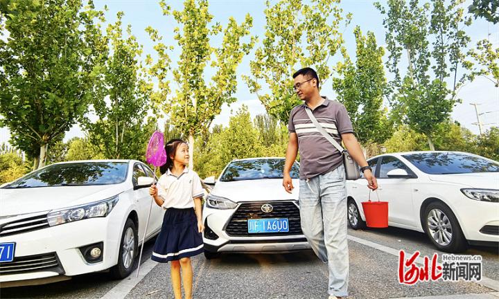 9月3日,雄安新区容城县居民薛磊开车来到悦容公园,将车停在林荫停车场内,带着女儿沿着林荫道走进公园。薛磊经常到这里散步,不仅因为这里有优美的园林景观,宽敞的林荫停车场也是“加分项”。“一玩儿起来就得半天时间,林荫停车场让我不用担心车被长时间暴晒。”薛磊说。