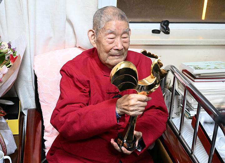 2024年11月16日,第37届中国电影金鸡奖颁奖典礼现场迎来温馨而隆重的一刻,99岁的徐光耀被授予中国文联终身成就奖(电影),这个奖是对他一生文学艺术成就的一次深情回望。即将100岁的徐光耀,穿着大红中式上衣捧着奖杯,脸上洋溢着孩子般的笑容。今天的年轻人无法想象他经历过的战火纷飞、风云变幻,岁月在他身上烙下的鲜明印记是赤子之心、战士风采。他用经典文学形象“小兵张嘎”影响了一代又一代青少年。他说,永远感谢冀中这片热土,是这片土地给了他源源不断的创作灵感。