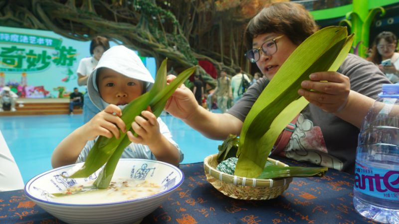 白天,轩辕里街区与魔方玩国成为传统文化体验的主舞台。游客可参与“手包百味粽”“香囊手作”“祈福彩绳编织”等互动项目,感受端午民俗的魅力。
