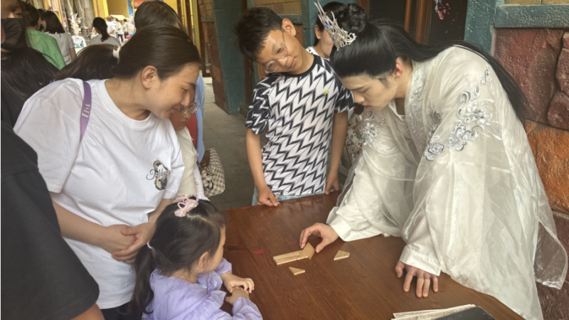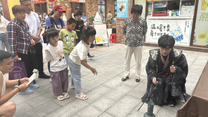 轩辕里街区神话NPC带游客体验投壶、捶丸等传统游戏,生动传承端午文化。角色互动让节日氛围更鲜活,游客参与感十足。