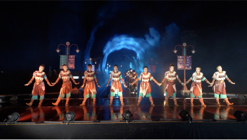 以上古神话为灵感,结合灯光、威亚飞天、焰火和非遗打铁花、火壶等,打造震撼视觉盛宴,成为夜间必看项目。