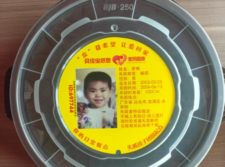 采访结束,阳光透过窗户,在一个餐盒标签上投下斑驳的光影。那是一个有着可爱酒窝的男孩,2008年失踪,家人的一只手搭在了他的右肩膀上。他的照片即将开启新的旅程,带着家人的思念,去往更远的地方。