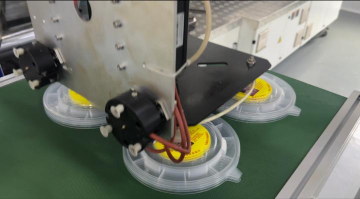6月初的一个炎热夏日,记者在该公司的生产线上看到,机械臂来回操作,黄色标签被均匀贴在餐盒盖上,随即又被抓取码放整齐。"现在我们正在加班加点生产,预计6月底首批30万只餐盒将销往全国,争取让每个外卖餐盒都成为'会说话'的寻亲线索。"该公司负责人闫宝烁说。