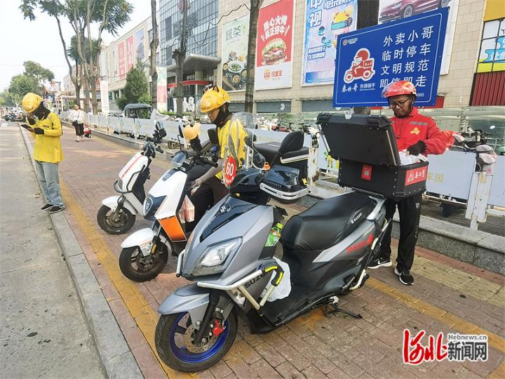 此外,在秦皇岛市的秦皇小巷、万达、世纪港湾等商圈也都设有外卖员专属停车区、“绿色通道”,方便外卖员取餐。