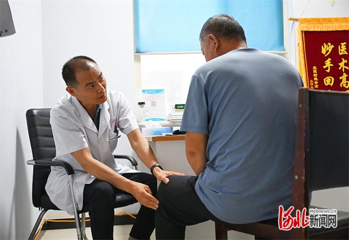 近日,邢台市南和区人民医院急诊科副主任医师王云飞在医共体共建单位南和区和阳镇卫生院为患者诊断病情。