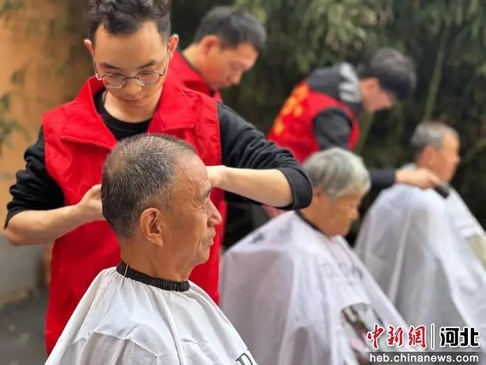 图为鸡泽县重阳节“爱老敬老”活动现场,志愿者们正在为老人理发。 田杏娇 摄