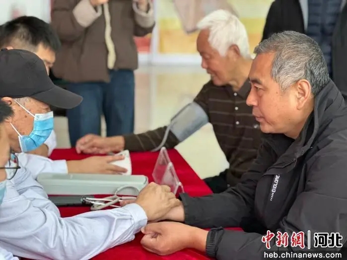 图为鸡泽县重阳节“爱老敬老”活动现场,医务志愿者们正在为老人进行健康体检。 田杏娇 摄
