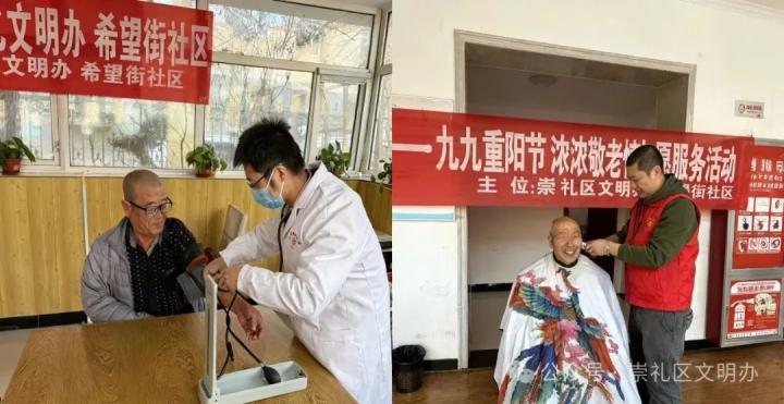 活动现场, “雪国义诊” 医疗志愿者布置好血压计等医疗器械,耐心地为老人们提供义务诊疗服务,提醒老人入冬后注意保暖,预防季节性疾病。“雪国义剪”志愿服务队的理发师提前备好电推子、剪刀、梳子、围布等工具,按照老人们的需求,精心为他们修剪发型。