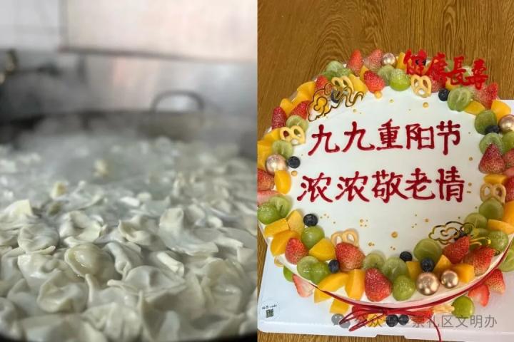 热腾腾的水饺与定制蛋糕,满是广大志愿者对老人的敬意。
